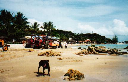 Terceira Praia - logo depois da Ilha da Saudade . É onde vai uma galera mais alternativa que é um pessoal legal também. Lá é possível pegar um Trator-trenzinho!? , que leva o pessoal que não está a fim de andar muito para praias mais distantes como o final da Quarta Praia , Boipeba e Garapuá. Quando você estiver andando nessa praia , preste atenção nesses monstros autorizados , pois eles andam bem rápido , e acredito que eles não tenham freios ABS pros goiabas distraídos. Também tem bastante gente andando a cavalo , inclusive foi lá , que pela primeira vez vi um cara andando a cavalo dentro do mar com a água na cintura e o cavalo só com a cabeça pra fora. Parecia que o bicho tava curtindo a praia.